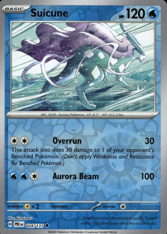 Suicune 2025 Scarlet & Violet: Prismatic Evolutions #024/131 Reverse Holo RAW TCG (LIGHTLY PLAYED) Price Guide