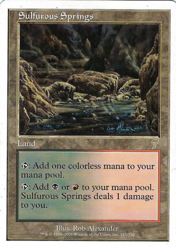 The Sulfurous Springs 2001 Seventh Edition #345 Base card in Raw TCG (Lightly Played) condition has moved up $1.20 (+32.0%) in the last 30 days and was last sold for $4.95 .