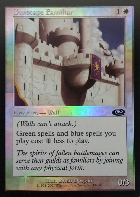 The Sunscape Familiar 2001 Planeshift #17 Foil card in Raw TCG (Lightly Played) condition has not changed in price in the last 30 days and was last sold for $39.99 .