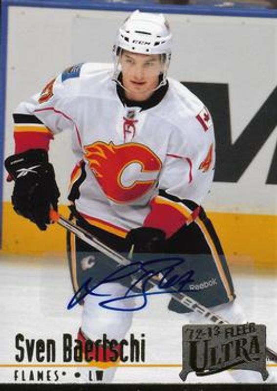 The Sven Baertschi 2012 Fleer Retro #94-7 1994 Ultra Autographs Rookie card is 1 of 19 Sven Baertschi's card variations in the 2012 Fleer Retro set being tracked by Sports Card Investor, including 1994 Ultra, Autographics 1999, Diamond Tribute, E X 2001, and Flair Showcase Row 2.