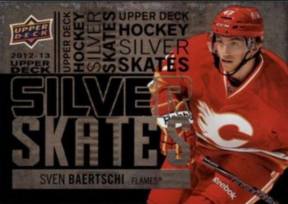 The Sven Baertschi 2012 Upper Deck #SS8 Silver Skates Rookie card is 1 of 8 Sven Baertschi's card variations in the 2012 Upper Deck set being tracked by Sports Card Investor, including #208 Young Guns Base, #C93 Young Guns Canvas, #208 Young Guns - UD Exclusives /100, #250 Young Guns - UD Exclusives /100, and #208 Young Guns - UD Exclusives Spectrum /10.