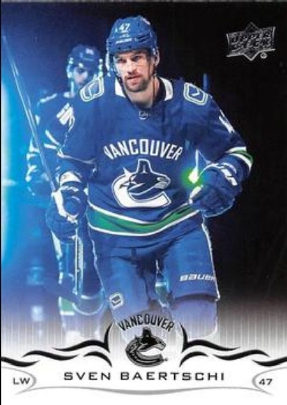 The Sven Baertschi 2018 Upper Deck #175 Base card is 1 of 7 Sven Baertschi's card variations in the 2018 Upper Deck set being tracked by Sports Card Investor, including Clear Cut, Silver Foil, Speckled Rainbow Foil, UD Exclusives /100, and UD High Gloss /10.