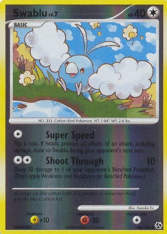This card is 1 of 2 Swablu's card variations in the 2008 Diamond & Pearl: Great Encounters set being tracked by Sports Card Investor, including Base.