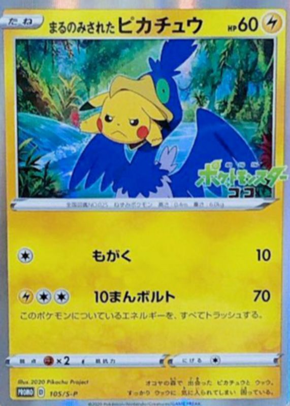The Swallowed Up Pikachu 2020 Japanese S-P Promo #105/S-P M23 Special Advance Ticket card in Raw TCG (Lightly Played) condition has not changed in price in the last 30 days and was last sold for $188.81 .