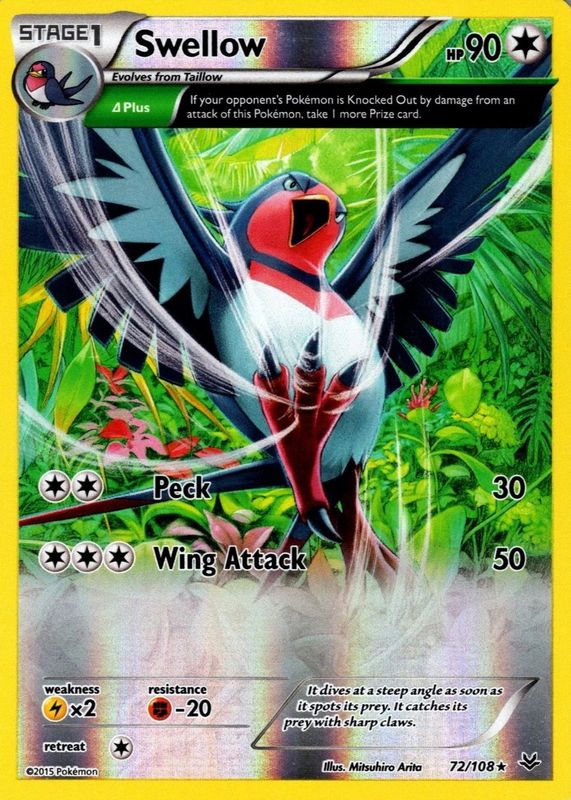 Swellow 2015 XY: Roaring Skies #072/108 Reverse Holo RAW TCG (LIGHTLY PLAYED) Price Guide