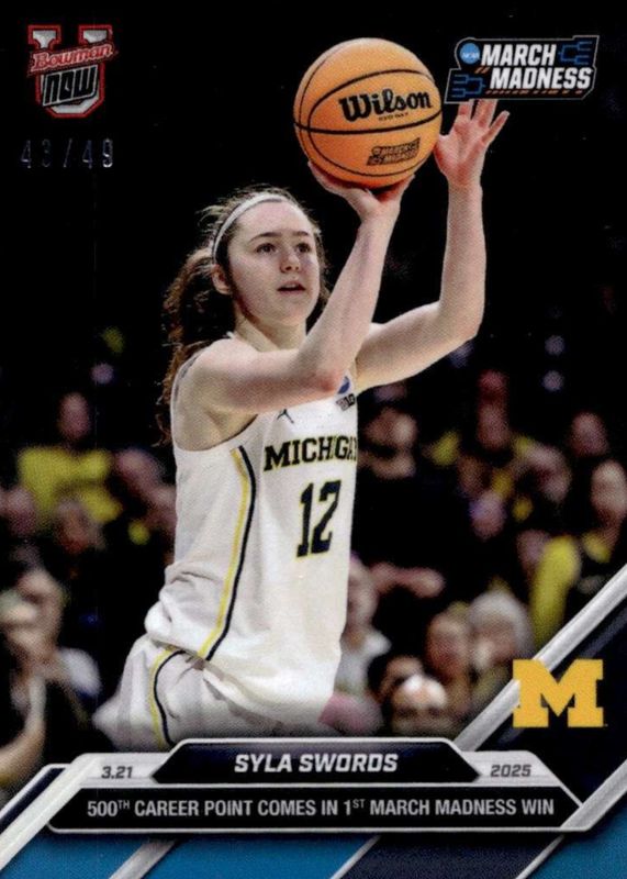 2024/25 Topps Now MARCH MADNESS BOWMAN U 92 SYLA SWORDS MICHIGAN WOLV BLUE /49