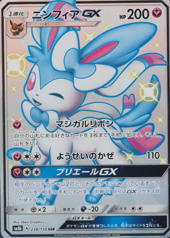 Sylveon GX 2018 Japanese Sun & Moon: GX Ultra Shiny #238/150 Shiny Super-Rare (Full Art) RAW TCG (LIGHTLY PLAYED) Price Guide