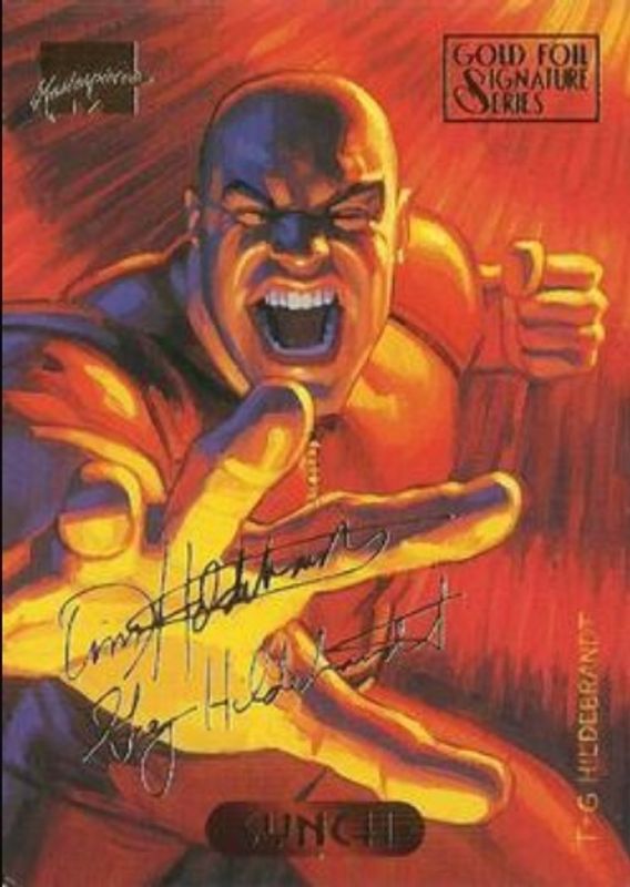 The Synch 1994 Fleer Marvel Masterpieces Hildebrandt Brothers #120 Gold Foil Signatures card is 1 of 2 Synch's card variations in the 1994 Fleer Marvel Masterpieces Hildebrandt Brothers set being tracked by Sports Card Investor, including Base.