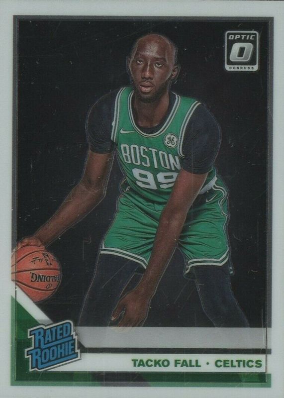 This card is 1 of 53 Tacko Fall's card variations in the 2019 Optic set being tracked by Sports Card Investor, including Blue Velocity, Checkerboard, Choice, Choice Red & Green, and Fanatics Green Wave.