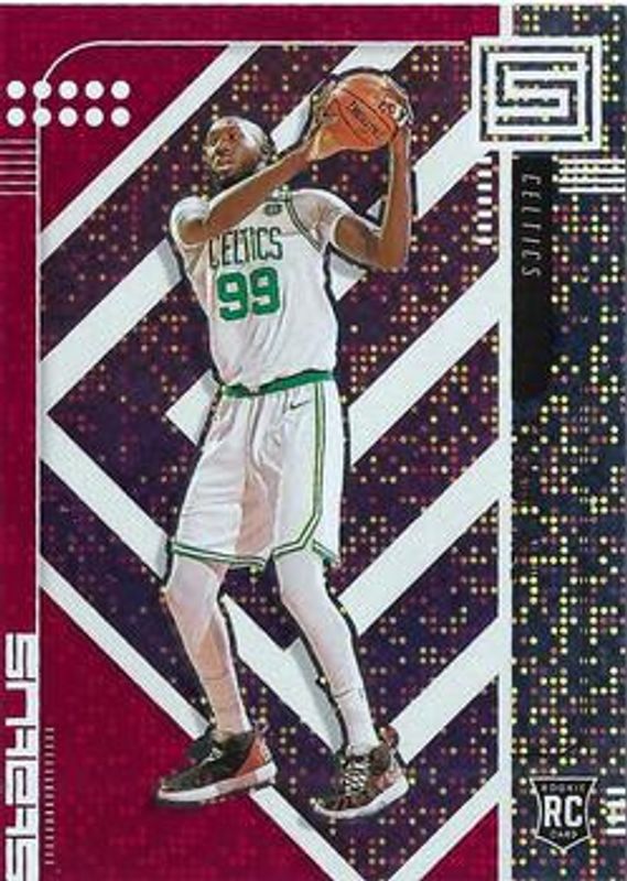 The Tacko Fall 2019 Status #178 Red Rookie card is 1 of 15 Tacko Fall's card variations in the 2019 Status set being tracked by Sports Card Investor, including Base, Blue, White Diamonds /125, Green Escher Squares /49, and Gold Fireworks /10.