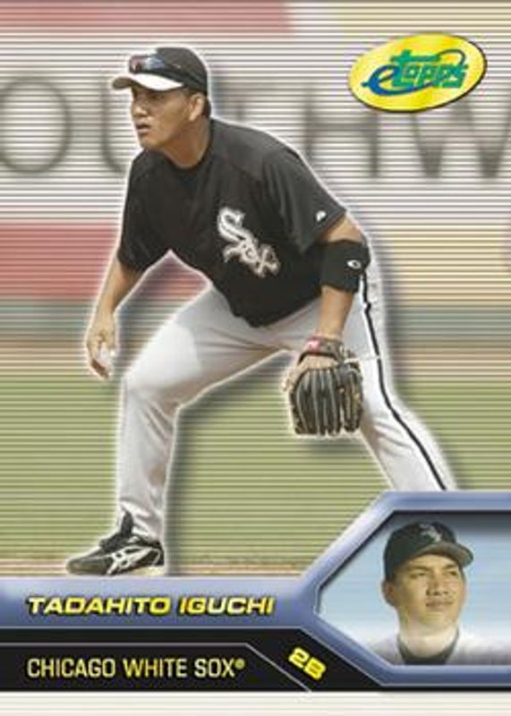 The Tadahito Iguchi 2005 eTopps #199 Base Rookie card is 1 of 2 Tadahito Iguchi's card variations in the 2005 eTopps set being tracked by Sports Card Investor, including Certificate of Issuance.