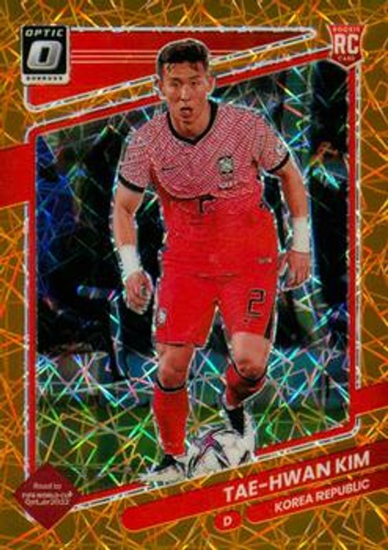 The Tae-hwan Kim 2021 Donruss #138 Optic - Orange Velocity /49 Rookie card is 1 of 25 Tae-hwan Kim's card variations in the 2021 Donruss set being tracked by Sports Card Investor, including Base, Holo Green Laser, Holo Orange Laser, Press Proof Gold /349, and Press Proof Purple /199.