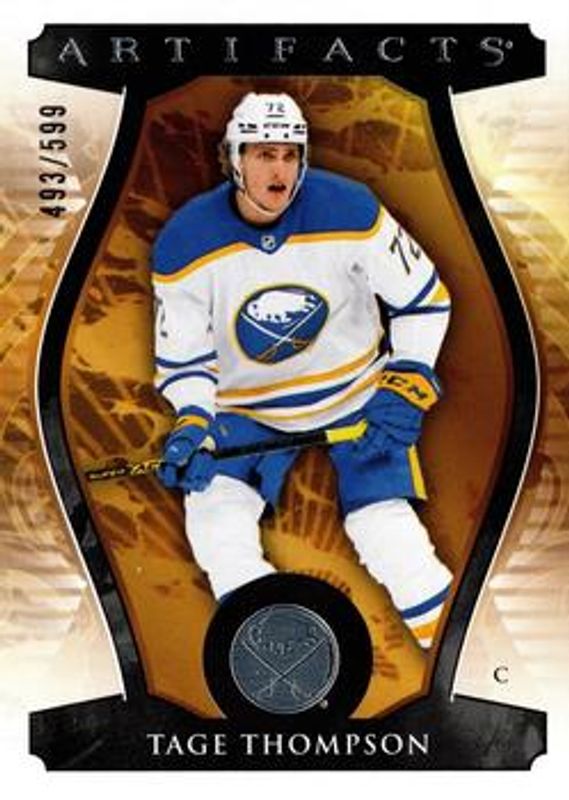 The Tage Thompson 2023 Upper Deck Artifacts #102 Base /999 card is 1 of 41 Tage Thompson's card variations in the 2023 Upper Deck Artifacts set being tracked by Sports Card Investor, including Leather, Plexi, Turquoise, Wood, and Ruby /499.
