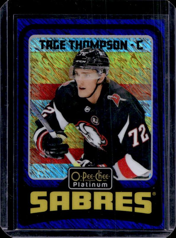 The Tage Thompson 2024 O-Pee-Chee Platinum #R45 Retro - Blue Luster /100 card is 1 of 25 Tage Thompson's card variations in the 2024 O-Pee-Chee Platinum set being tracked by Sports Card Investor, including Base, Neon Yellow Surge, Pink Magma, Rainbow, and Sunset.
