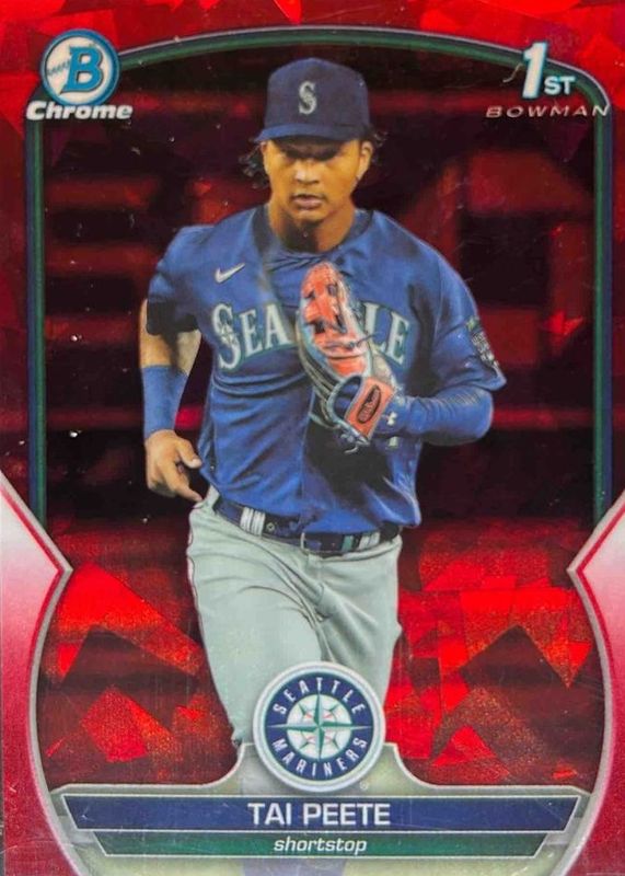 The Tai Peete 2023 Bowman Draft Sapphire Edition #BDC-28 Chrome - Red /5 (1st) card in Raw condition has not changed in price in the last 30 days.