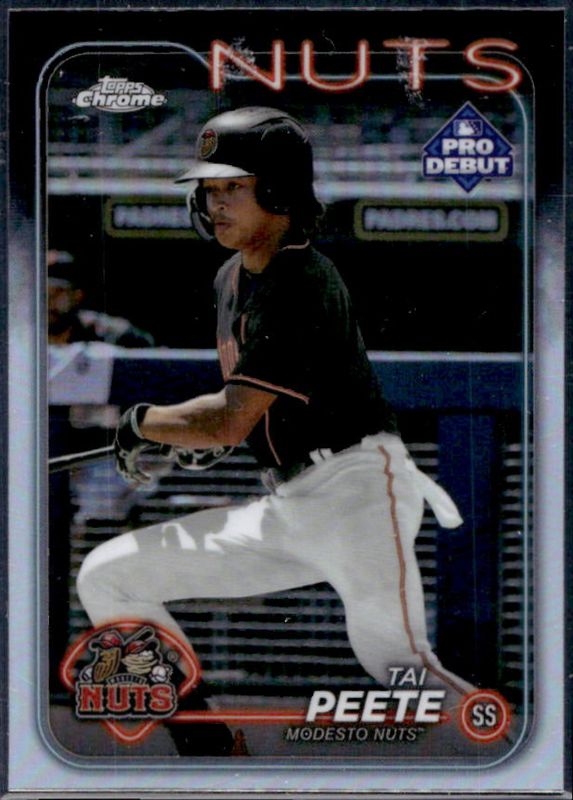 The Tai Peete 2024 Topps Pro Debut #PDC-107 Chrome card is 1 of 37 Tai Peete's card variations in the 2024 Topps Pro Debut set being tracked by Sports Card Investor, including Base, Fuchsia Foil /199, Sparkle Foil /175, Blue Foil /150, and Green Foil /99.