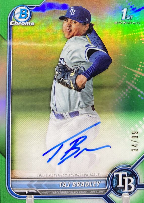 2022 Bowman Chrome Taj Bradley Green Auto RC 1st #'d 14/99 - Tampa Bay Rays