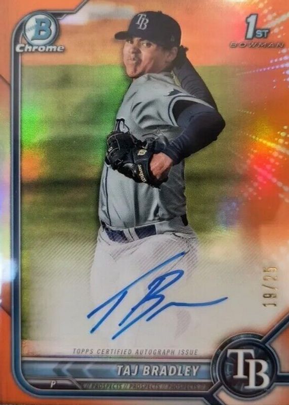 2022 Bowman Chrome 1st Auto Taj Bradley Orange /25 SP Tampa Bay Rays