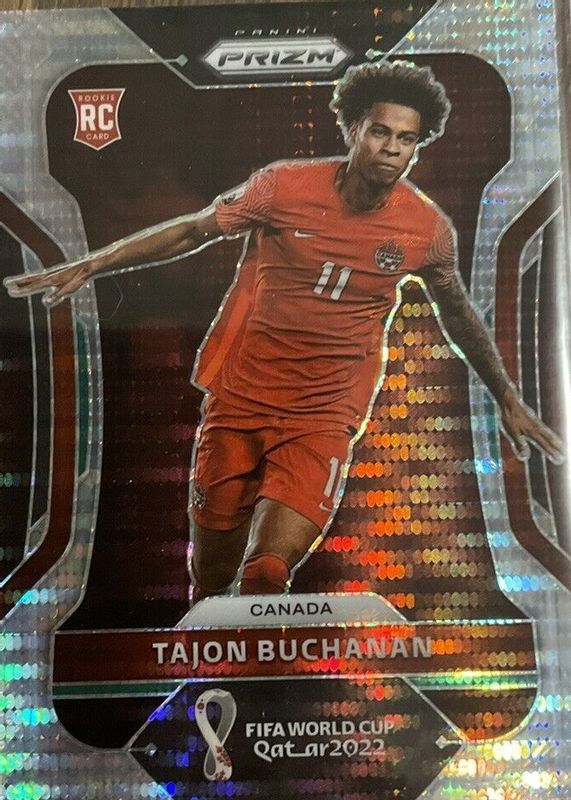 The Tajon Buchanan 2022 Prizm World Cup #54 Breakaway Rookie card in Raw condition has not changed in price in the last 30 days and was last sold for $6.52 .