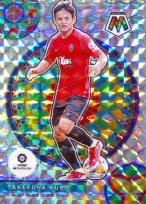 The Takefusa Kubo 2021 Mosaic La Liga #34 Stained Glass /(SSP) card in Raw condition has not changed in price in the last 30 days and was last sold for $78.00 .