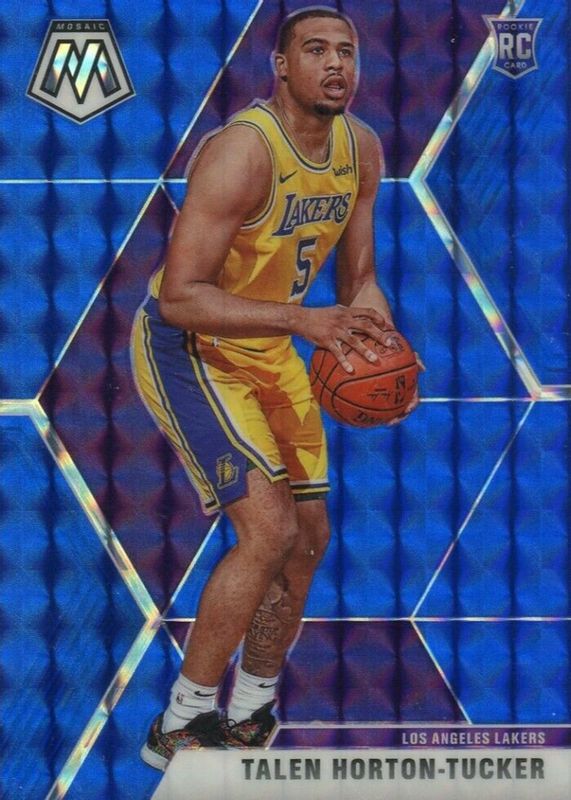 The Talen Horton-Tucker 2019 Mosaic #215 Blue /99 Rookie card in Raw condition has not changed in price in the last 30 days and was last sold for $14.75 .