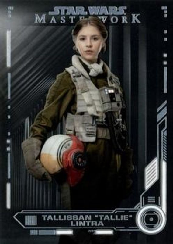 The Tallie Lintra 2019 Topps Star Wars Masterwork #59 Base card is 1 of 11 Tallie Lintra's card variations in the 2019 Topps Star Wars Masterwork set being tracked by Sports Card Investor, including Blue, Green /99, Purple /50, Orange /10, and Black /5.
