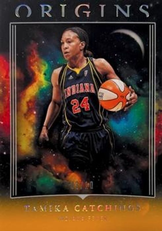 The Tamika Catchings 2024 Origins WNBA #81 Gold /10 card is 1 of 22 Tamika Catchings' card variations in the 2024 Origins WNBA set being tracked by Sports Card Investor, including Base, Red /99, Blue /75, Swirl /(SSP), and Teal /49.