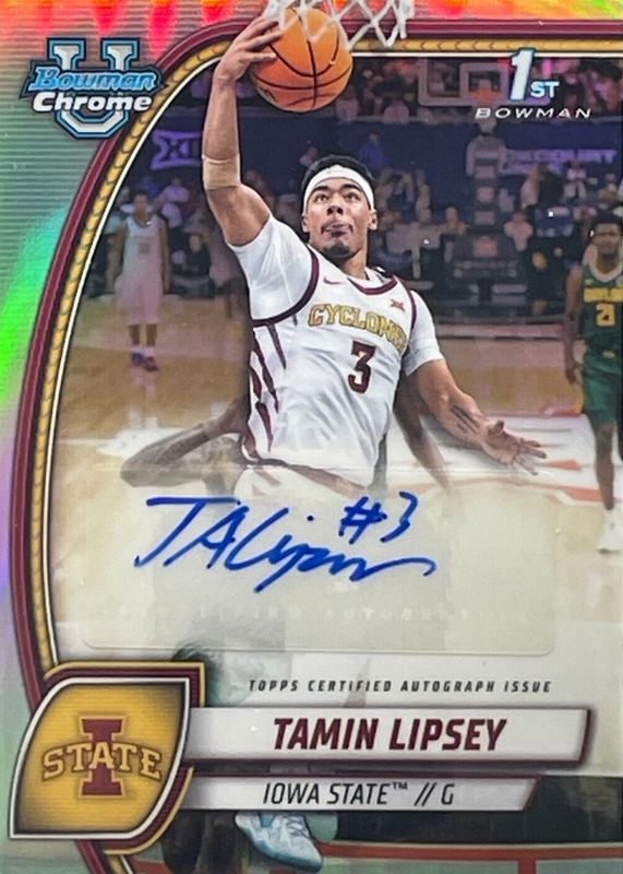 TAMIN LIPSEY 2024-25 BOWMAN UNIVERSITY CHROME 1ST REFRACTOR AUTO