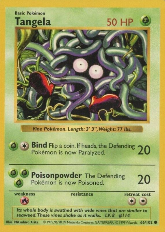1999 Pokémon TCG - Tangela - Base Set - Shadowless - MP - 66/102