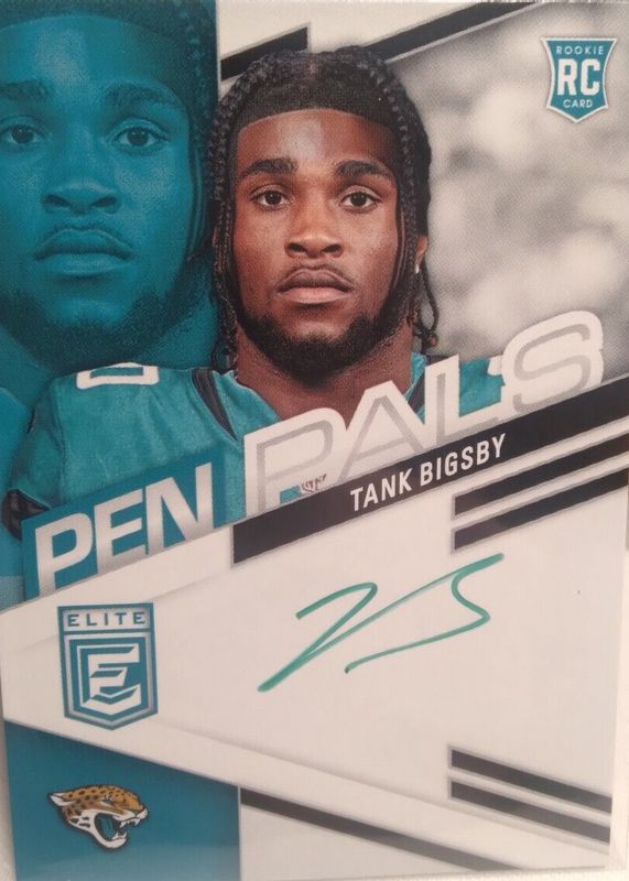 This card is 1 of 14 Tank Bigsby's card variations in the 2023 Elite set being tracked by Sports Card Investor, including Pen Pals, Pen Pals - Black Gold Ink, Pen Pals - Blue Ink, Pen Pals - Purple Ink, and Pen Pals - Red Ink.