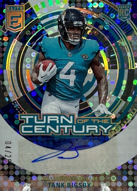 The Tank Bigsby 2023 Elite #TC-TBI Turn of the Century Autographs - Blue /25 Rookie card in Raw condition has not changed in price in the last 30 days and was last sold for $22.39 .