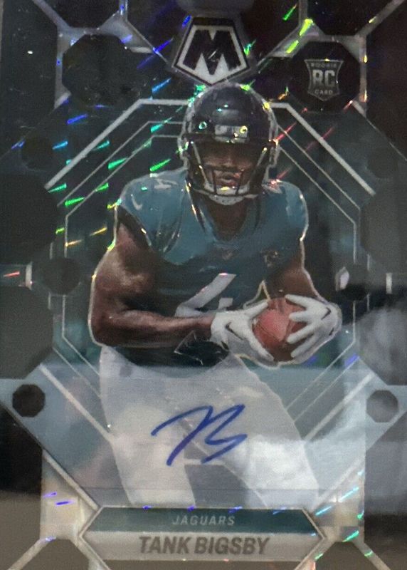 The Tank Bigsby 2023 Mosaic #364 Rookie Autographs - Black /1 card in Raw condition has not changed in price in the last 30 days and was last sold for $260.00 .