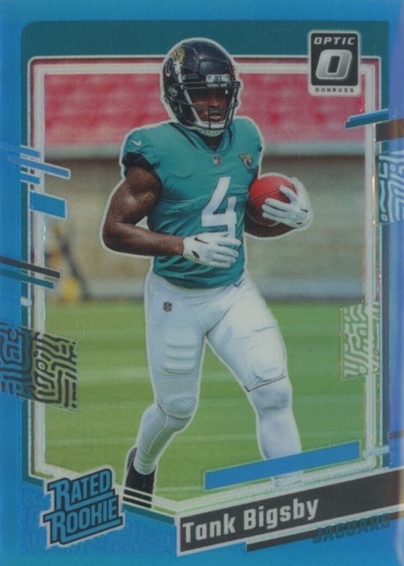 This card is 1 of 61 Tank Bigsby's card variations in the 2023 Optic set being tracked by Sports Card Investor, including Base, Blue Hyper, Blue Scope, Green Hyper, and Green Velocity.