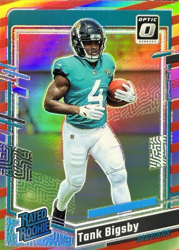 This card is 1 of 61 Tank Bigsby's card variations in the 2023 Optic set being tracked by Sports Card Investor, including Base, Blue Hyper, Blue Scope, Green Hyper, and Green Velocity.