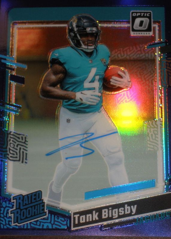 This card is 1 of 61 Tank Bigsby's card variations in the 2023 Optic set being tracked by Sports Card Investor, including Base, Blue Hyper, Blue Scope, Green Hyper, and Green Velocity.