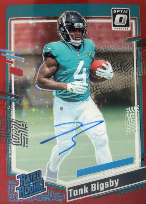 The Tank Bigsby 2023 Optic #252 Rated Rookie Autographs - Red Stars /11 card in Raw condition has not changed in price in the last 30 days and was last sold for $32.00 .