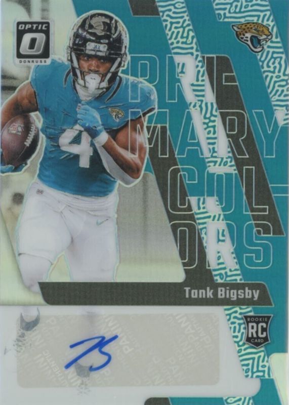 The Tank Bigsby 2023 Optic #17 Rookie Primary Colors Autographs (/99) card in Raw condition has not changed in price in the last 30 days and was last sold for $5.33 .