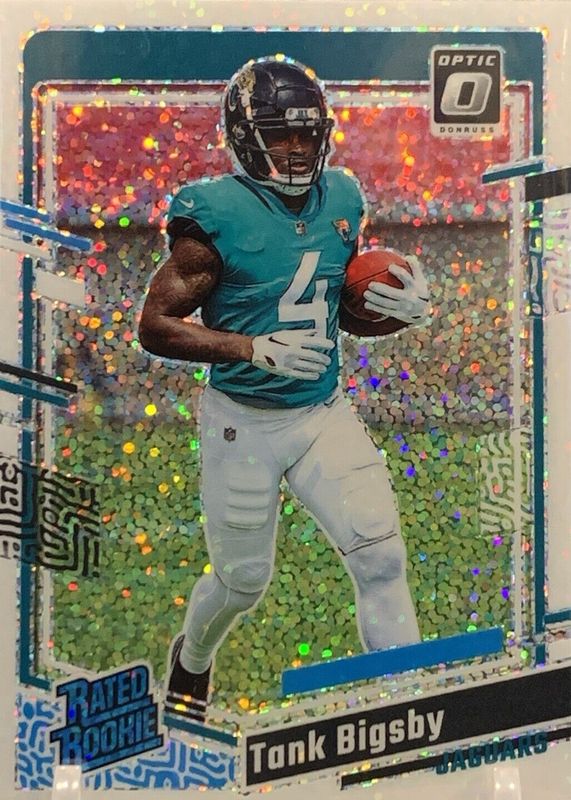This card is 1 of 61 Tank Bigsby's card variations in the 2023 Optic set being tracked by Sports Card Investor, including Base, Blue Hyper, Blue Scope, Green Hyper, and Green Velocity.
