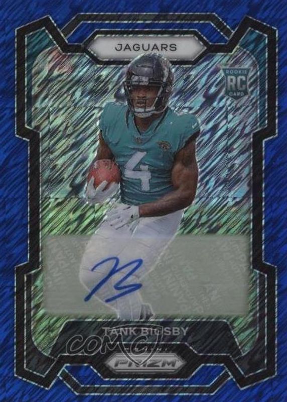 The Tank Bigsby 2023 Prizm #348 Rookie Autographs - Blue Shimmer /25 card in Raw condition has not changed in price in the last 30 days and was last sold for $55.16 .