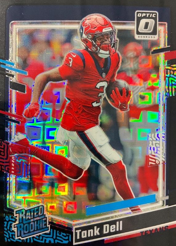 This card is 1 of 63 Tank Dell's card variations in the 2023 Optic set being tracked by Sports Card Investor, including Base, Blue Hyper, Blue Scope, Green Hyper, and Green Velocity.