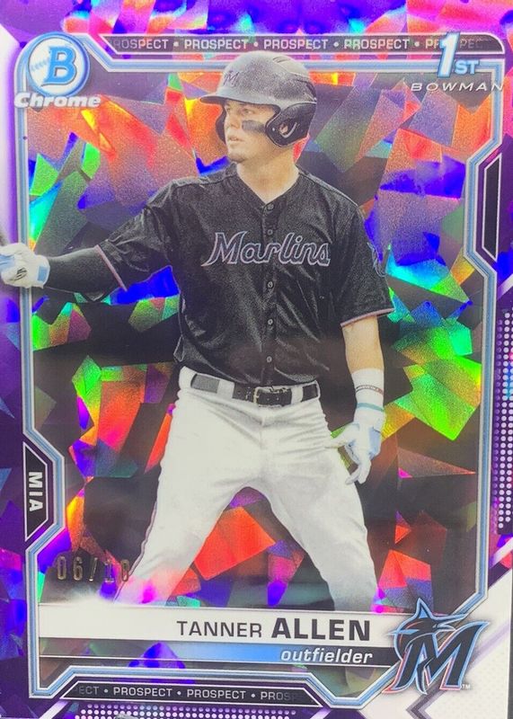Tanner Allen 2021 Bowman Draft Sapphire Edition #BDC-165 Chrome - Purple /10 (1st) Rookie RAW Price Guide