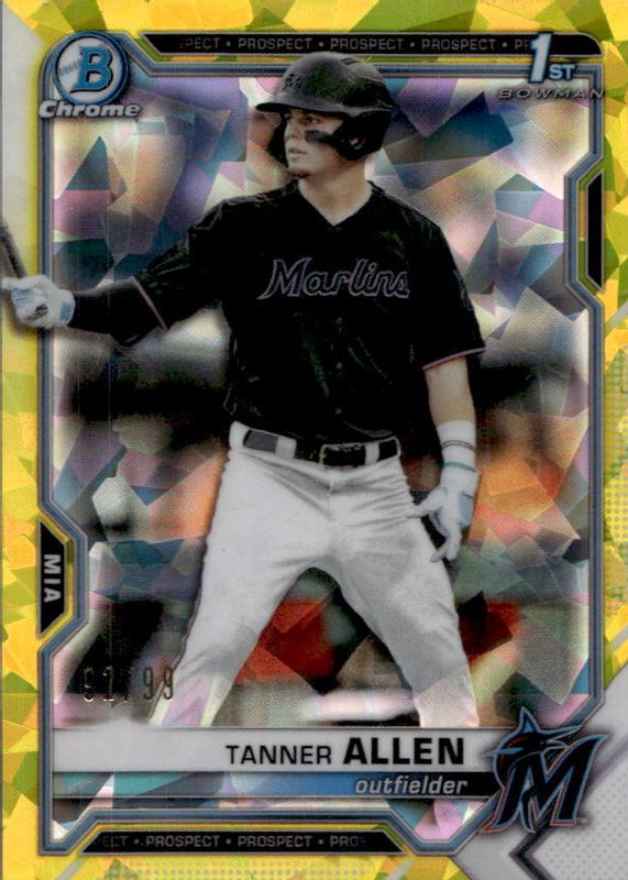 2021 Bowman Chrome Draft Sapphire Tanner Allen Yellow Refractor #91/99 Marlins