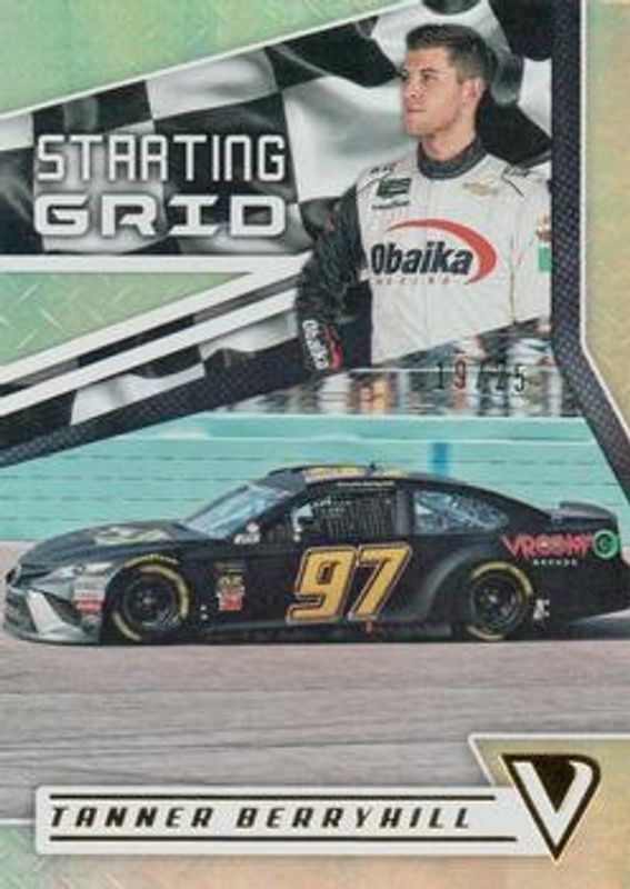 The Tanner Berryhill 2019 Victory Lane NASCAR #S6 Starting Grid Gold /25 Rookie card is 1 of 21 Tanner Berryhill's card variations in the 2019 Victory Lane NASCAR set being tracked by Sports Card Investor, including Base, Gold /25, Black /1, Printing Plates Black /1, and Printing Plates Cyan /1.