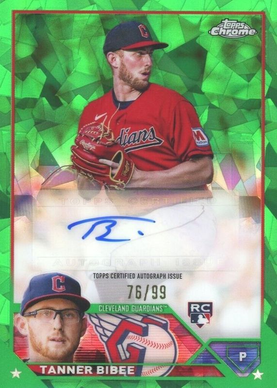 Auctions Ending Soon for Tanner Bibee 2023 Topps Chrome Update Sapphire Edition #USA-TB Autographs - Green /99 Rookie RAW