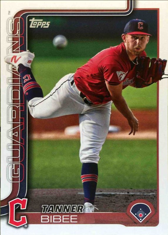 The Tanner Bibee 2025 Topps #164 Base card is 1 of 82 Tanner Bibee's card variations in the 2025 Topps set being tracked by Sports Card Investor, including Aqua Holo Foil, Diamante Foil, Holo Foil, Pink Diamante Foil, and Pink Holo Foil.