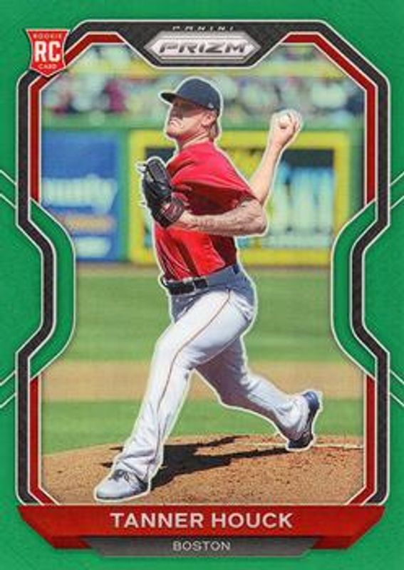 The Tanner Houck 2021 Prizm #4 Green Rookie card is 1 of 69 Tanner Houck's card variations in the 2021 Prizm set being tracked by Sports Card Investor, including Base, Blue, Blue Velocity, Carolina Blue, and Cosmic Haze.