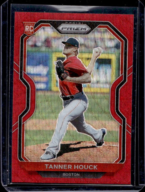 The Tanner Houck 2021 Prizm #4 Red Wave /99 Rookie card is 1 of 69 Tanner Houck's card variations in the 2021 Prizm set being tracked by Sports Card Investor, including Base, Blue, Blue Velocity, Carolina Blue, and Cosmic Haze.