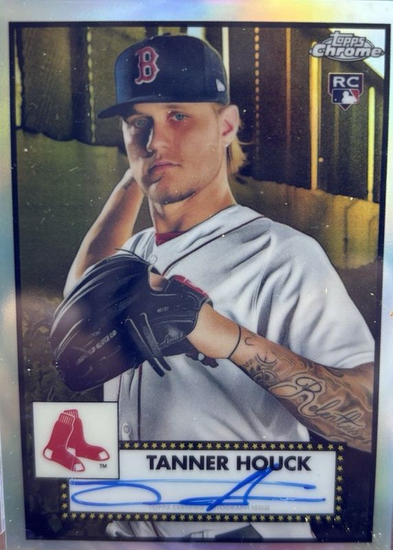 This card is 1 of 2 Tanner Houck's card variations in the 2021 Topps Chrome Platinum Anniversary set being tracked by Sports Card Investor, including Refractor Auto /199.