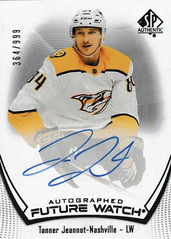 2021-22 SP Authentic Tanner Jeannot Future Watch Autographed Rookie Auto /999