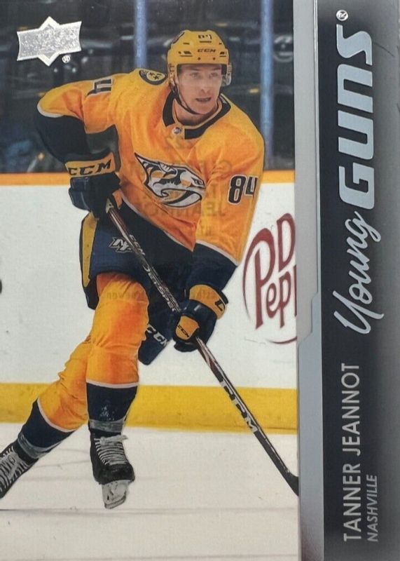 This card is 1 of 10 Tanner Jeannot's card variations in the 2021 Upper Deck set being tracked by Sports Card Investor, including Young Guns Base, Young Guns Canvas, Young Guns - Clear Cut Exclusives, Young Guns - French, and Young Guns - Jumbo.